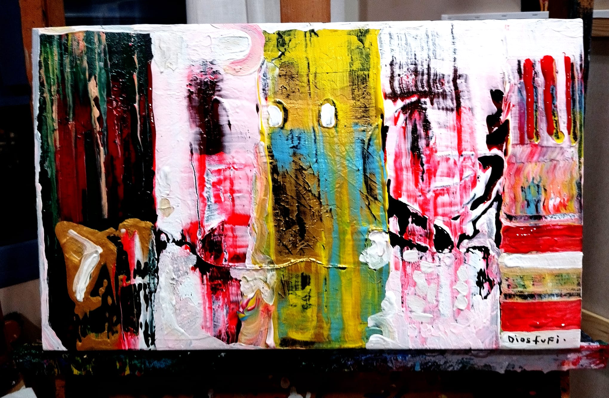 Acrílico sobre lienzo reciclado (anteriormente un abstracto meramente decorativo de esos del Ikea).